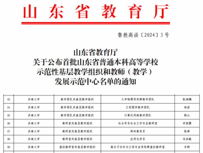 近日,山东省教育厅发布了《关于公布首批山东省普通本科高等学校示范性基层教学组织和教师(教学)发展示范中心名单的通知》,开云申报的7个基层教学组织全部获评山东省示范性基层教学组织,涵盖教学团队类、教研室类、虚拟教研室类等不同类型。