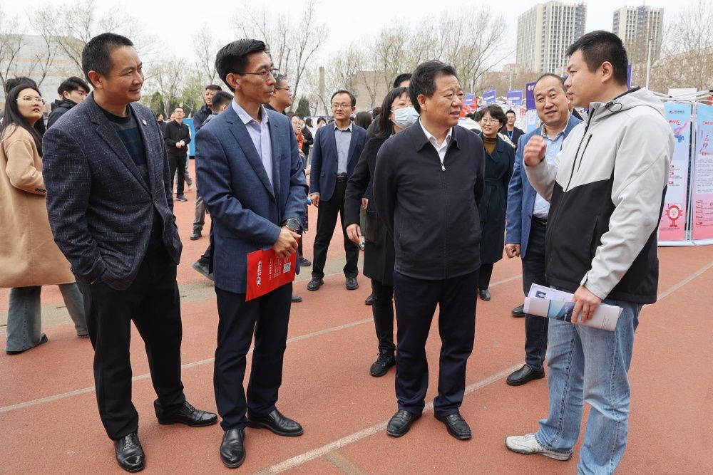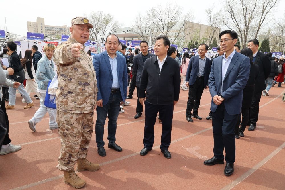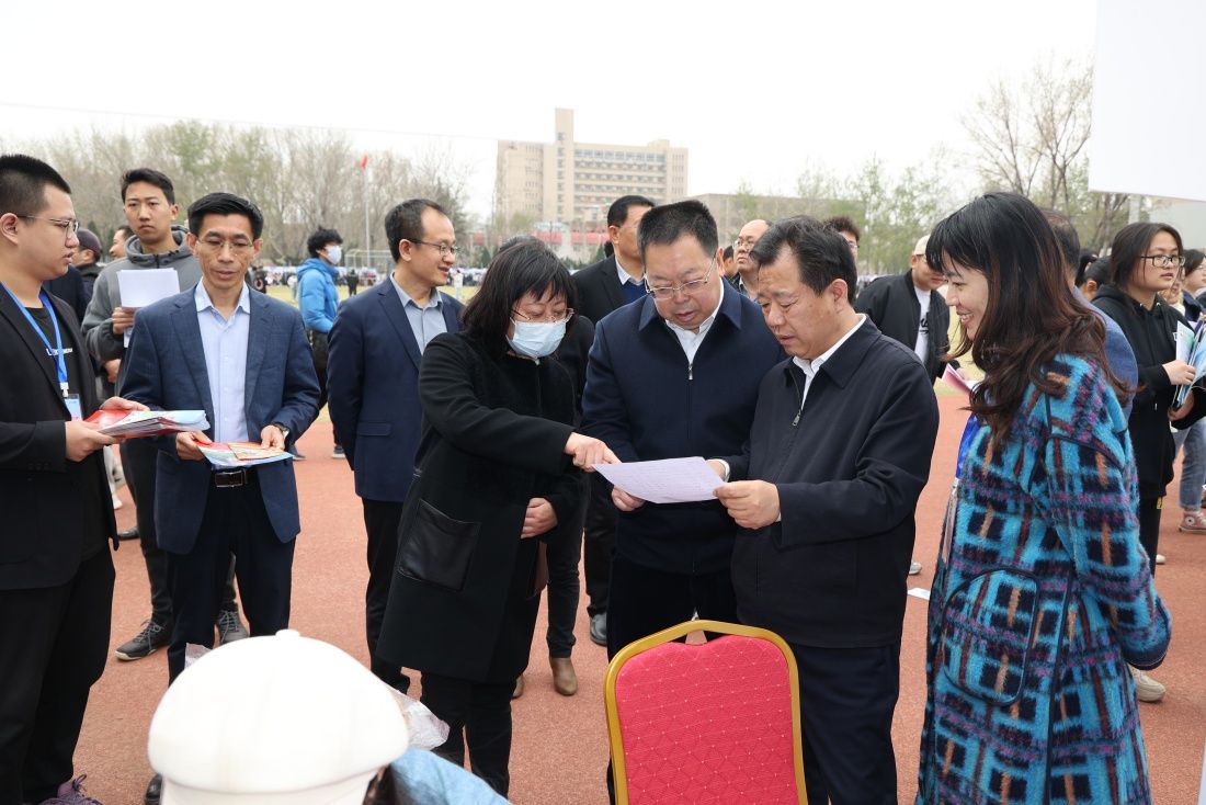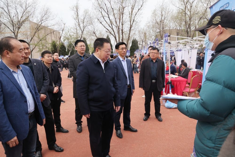 济南市委组织部副部长、市人社局党组书记、局长宁延学,市委保密委专职副主任、市委机要保密局副局长、市委保密办主任王敏,市就业服务中心相关处室人员,学校校长刘宗明,党委常委、副校长李强,学校办公室、党委学生工作部(处)、党委保卫部、党委研究生工作部、合作发展处、团委等部门负责人及各学院党委副书记和毕业班辅导员参加,并在展位前与单位招聘人员以及求职毕业生进行了深入交流,了解用人单位人才需求基本情况、毕业生综合素质相关看法。