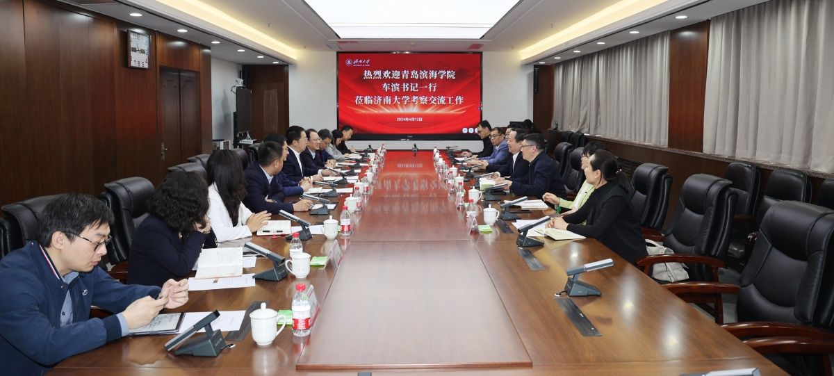 4月12日,青岛滨海学院党委书记车滨,党委委员、副校长翟明戈,党委副书记孙健一行来校考察交流。校长刘宗明,党委常委、宣传部部长贾海宁,党委常委、组织部部长滕晋,党委常委、统战部部长徐庆国,学校党委(校长)办公室主任孙润元,人力资源处处长董洁,科技处处长颜梅,党委研究生工作部部长张兵,党委学生工作部(处)、教务处等相关负责人参加座谈会。