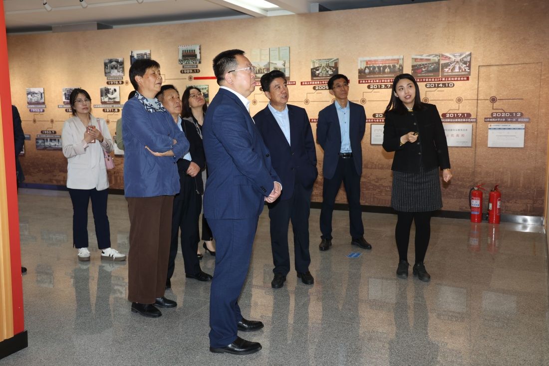 座谈会前,山东协和学院一行在刘宗明、李强陪同下参观了学校办学成就展。