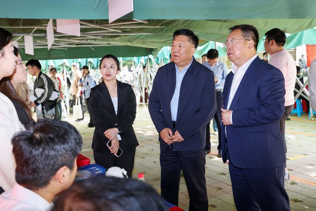 招聘现场,刘宗明、陈其军等与各个展位参会单位代表沟通交流,充分了解用人单位具体招聘需求与学生简历投递情况,了解学生的就业意向与就业过程中遇到的难题,鼓励学生充分做好就业准备,发挥专业优势,实现高质量就业。