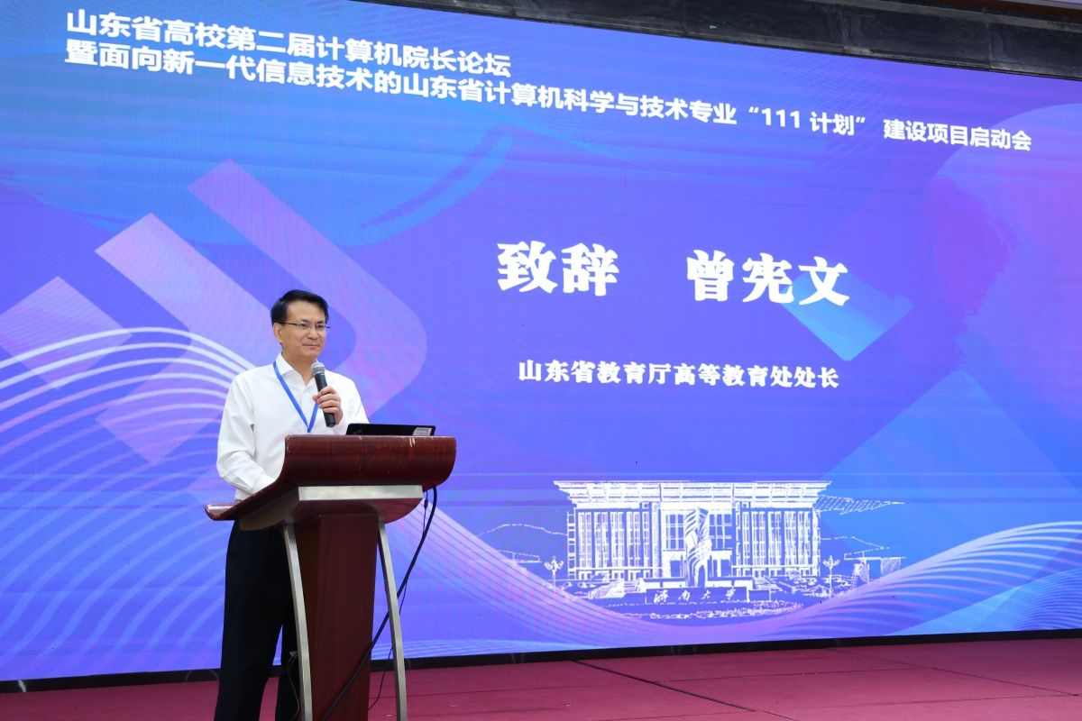 5月19日,由山东省教育厅指导,山东省高校计算机院长论坛组委会主办,开云kaiyun官网和山东计算机学会承办的山东省高校第二届计算机院长论坛暨面向新一代信息技术的山东省计算机科学与技术专业“111计划”建设项目启动会在山东济南召开。会议主题是“数字时代计算机科学与技术专业人才培养及核心课程建设”。山东省教育厅高等教育处处长曾宪文,开云kaiyun官网副校长王霞,山东计算机学会理事长杨波,济南计算机学会理事长董吉文,项目牵头单位负责人、山东大学计算机科学与技术学院院长成秀珍,以及来自省内近40所本科高校、11家企业代表出席活动。北京大学计算机学院院长胡振江、西安交通大学计算机科学与技术学院院长张兴军、吉林大学胡亮教授作大会特邀报告,山东大学彭朝晖教授及企业代表作专题报告。大会开幕式由开云kaiyun官网教务处处长、信息科学与工程学院院长陈贞翔主持。