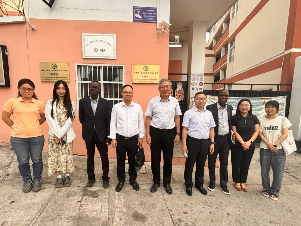 在马利安·恩古瓦比大学,代表团分别与校长恭特朗•翁佐托(Gontran ONDZOTTO)教授、孔子学院外方院长安东尼•伽高索、中方院长周志民及学校相关部门负责人进行座谈。双方回顾了两校前期的合作成果,肯定了孔子学院在刚果(布)国际中文教学和中刚文化交流中发挥的积极作用。双方希望两校在孔子学院良好合作的基础上,以非洲研究中心为平台,继续深化在其他专业学科领域的合作。