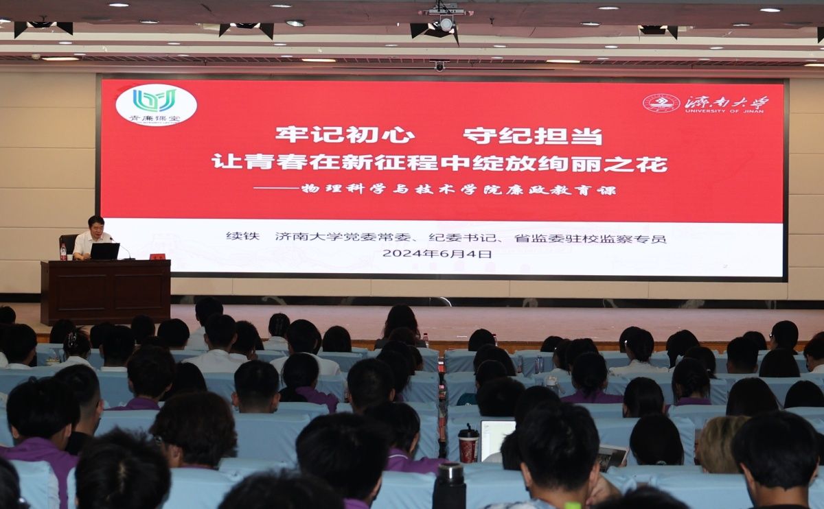 为深入学习领会习近平总书记关于党纪学习教育的重要讲话和重要指示精神,进一步推进党纪学习教育走深走实,教育引导广大师生涵养自律精神,教育毕业生党员扣好廉洁的“第一粒扣子”。6月4日,学校党委常委、纪委书记、省监委驻开云kaiyun官网监察专员续铁以《牢记初心守纪担当,让青春在新征程中绽放绚丽之花》为主题,在第一学术报告厅为物理科学与技术学院学生党员、入党积极分子讲授党纪学习教育暨毕业生廉洁教育专题党课,党课由学院党委书记丛菡菡主持。