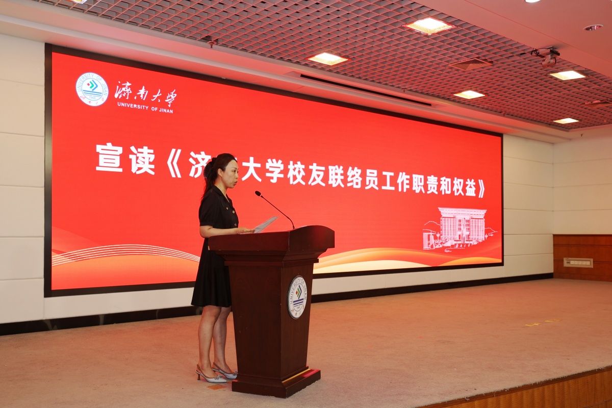 黄加栋代表学校向2024届校友联络员表示祝贺和感谢。他指出,校友联络员是一份荣誉,更是一份责任;校友是母校精神、文化、传统的重要传承者,也是母校荣誉、成就、声望的重要缔造者,是学校教育事业发展最可信赖和依靠的力量。学校高度重视校友工作,自2012年开始建立校友联络员聘任制度,到今年共有6100多名热心毕业生加入到校友联络员的队伍中,为学校的高质量发展作出了贡献。他希望2024届校友联络员秉承校训,志存高远,做母校精神的传播者;履职尽责,热心服务,做校友联谊的联络员;积极作为,感恩母校,做母校发展的参与者,在青春的赛道上奋力奔跑,努力跑出济大人最美的姿态,最好的成绩。