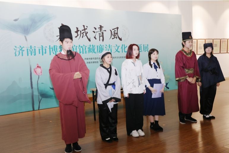 仪式结束后,在济南市博物馆讲解员的讲解下,与会人员参观展览并观看文学院青笋剧团出演的廉洁主题短剧《天下苍生》。此外,现场还展出了“清廉”元素系列文创产品,受到一致好评。