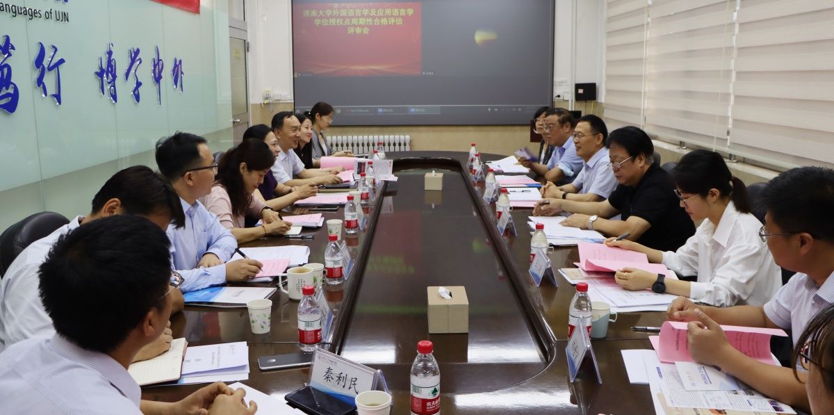 评估专家组由全国翻译专业研究生教育指导委员会委员、中国海洋大学外国语学院原院长、博士生导师杨连瑞教授担任组长,成员包括国务院学位委员会外国语言文学学科评议组成员、博士生导师彭青龙教授,教育部跨世纪人才、上海交通大学特聘教授、博士生导师刘建军教授,中国辞书学会理事兼双语词典专业委员会副主任委员、厦门大学原副院长、博士生导师吴建平教授,山东省国外语言学学会理事、山东理工大学外国语学院党委书记李静教授,德州市外办党组成员、副主任王琦,中国翻译协会理事、译国译民集团董事长林世宋。