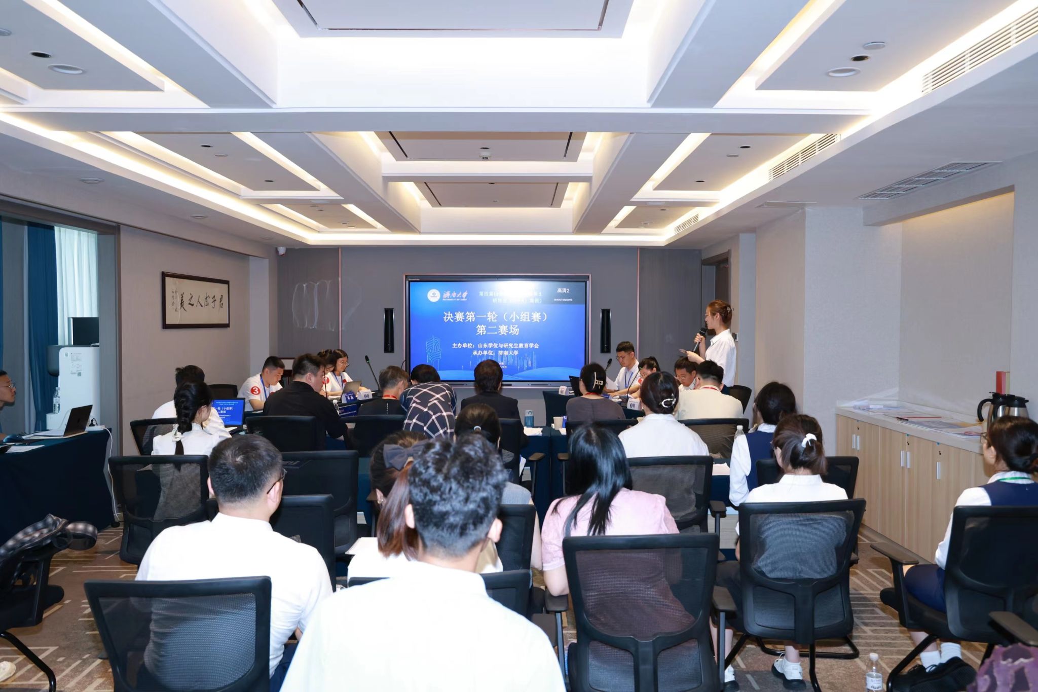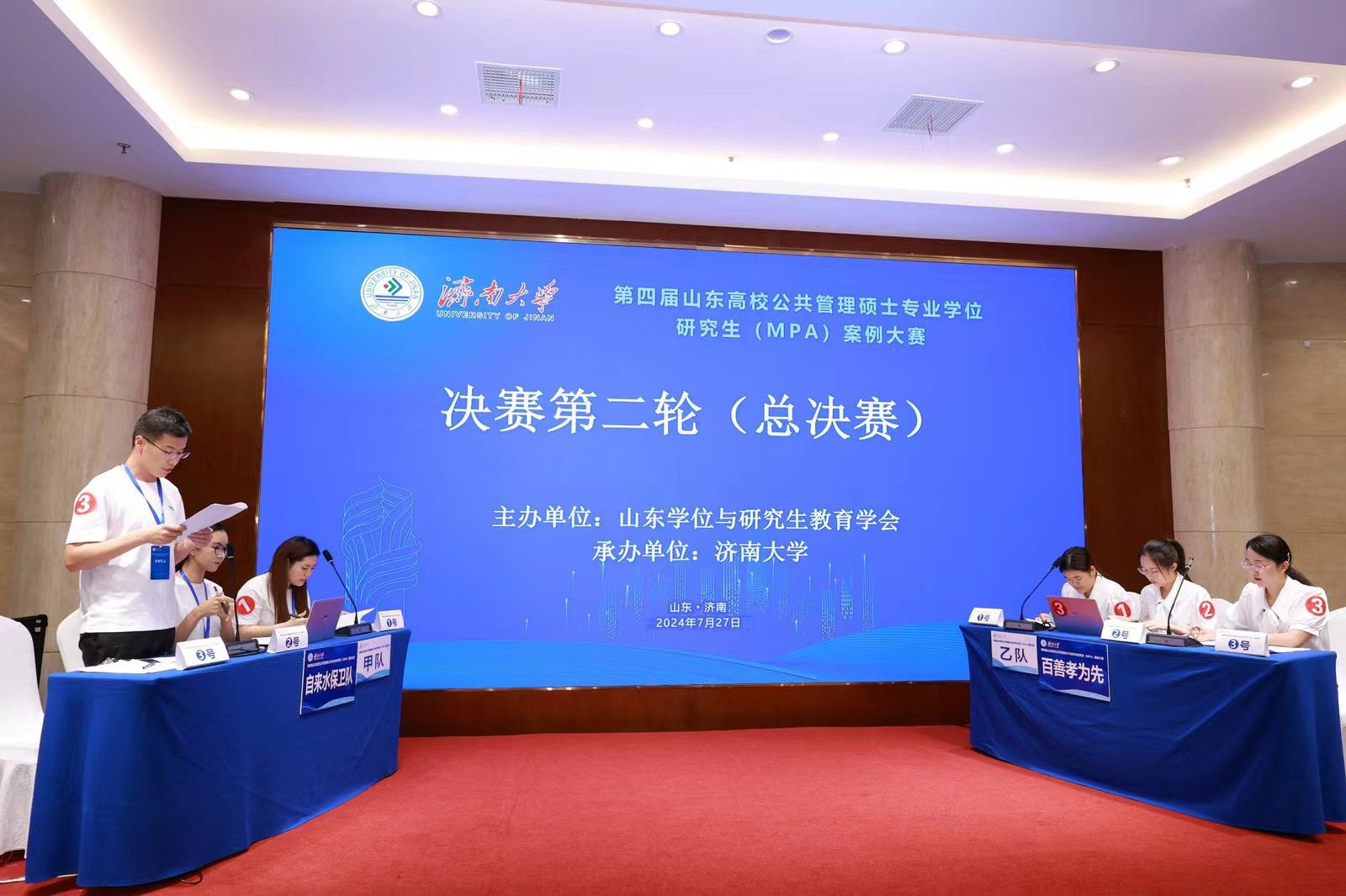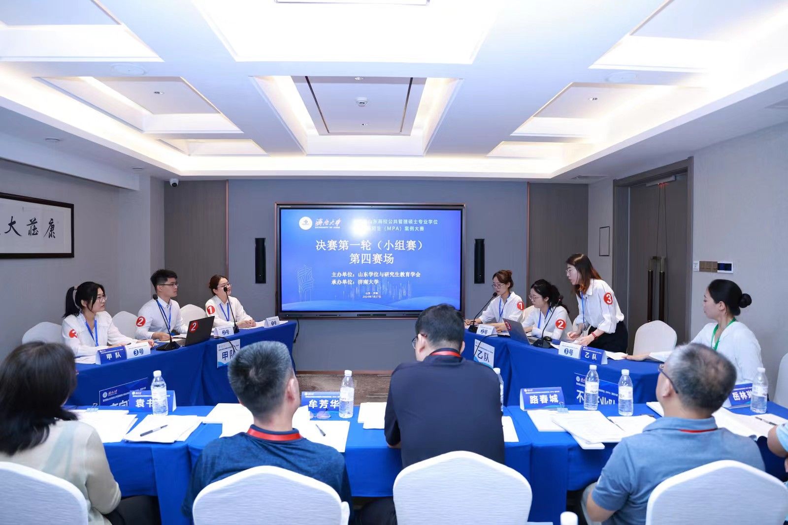 决赛分为小组赛和总决赛两个环节。7月27日上午为小组赛,分为四个赛场同时进行。24支参赛队伍通过抽签确定赛场和对手,每个赛场6支队伍、两两对决。比赛双方现场展示案例正文及分析报告,并进行自由辩论、总结陈述。评委根据每支队伍的案例采编及分析质量、专业水平和比赛表现进行现场评分。经过一上午的激烈比赛,来自山东大学、山东师范大学、曲阜师范大学和开云kaiyun官网的4支队伍进入大赛总决赛,共同角逐特等奖和一等奖。