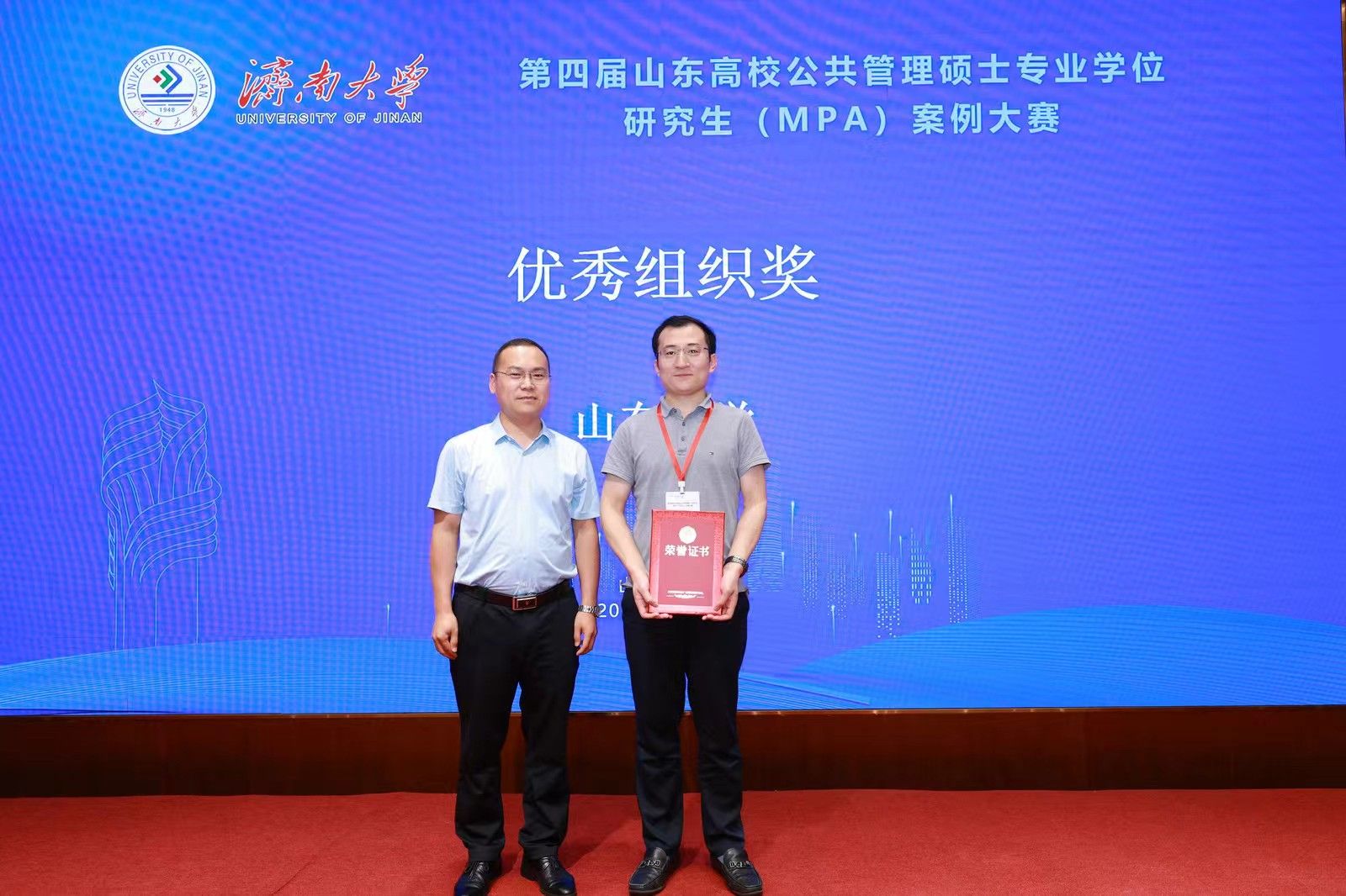 本届山东高校公共管理硕士专业学位研究生(MPA)案例大赛共评选出特等奖1名、一等奖3名、二等奖4名、三等奖8名、优秀奖8名,最佳指导教师奖1名、最佳文本奖1个、最有价值队员奖2名、优秀组织奖1个。开云共有9支队伍参加本届案例大赛,其中2支队伍入围决赛并取得了优异成绩。宁有才老师指导的“百善孝为先队”荣获一等奖,魏志荣老师指导的“铁道游击队”荣获三等奖,取得了历史性突破。