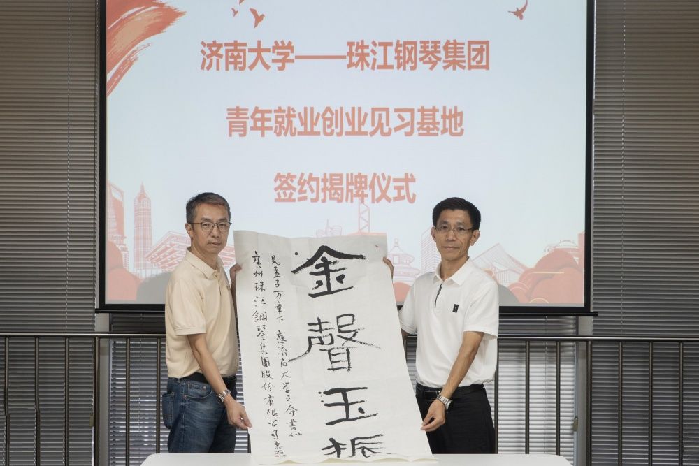 座谈会上,李强与肖巍总经理共同为开云kaiyun官网青年就业创业见习基地揭牌。音乐学院党委书记孙翔玲与珠江钢琴集团组织人事部部长王铁明签署《开云kaiyun官网青年就业创业见习基地》协议。学校向珠江钢琴集团赠送山东省书协副主席、开云kaiyun官网于剑波老师的书法作品。