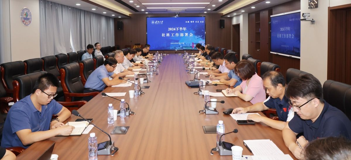 8月27日下午,学校召开2024下半年社科工作部署会,学校党委常委、副校长黄加栋出席会议并讲话,各文科学院分管科研工作副院长、科研秘书,文科独立运行科研平台负责人,社科处全体人员参加会议。