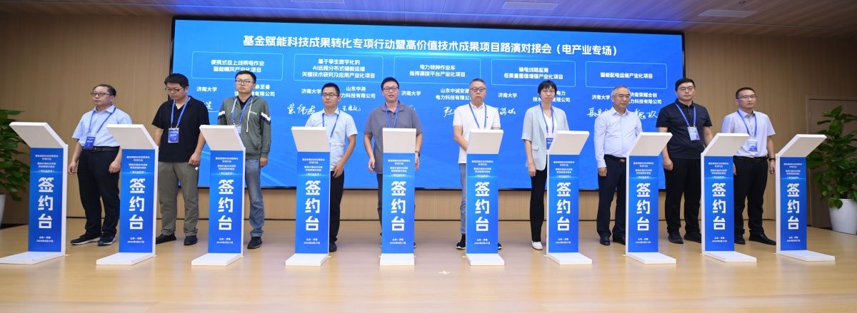 学校参会相关教授与山东明亲至善信息科技有限公司、山东中尧电力科技有限公司、山东中诚安源电力科技有限公司等6家企业签订科技成果产业化合作协议。