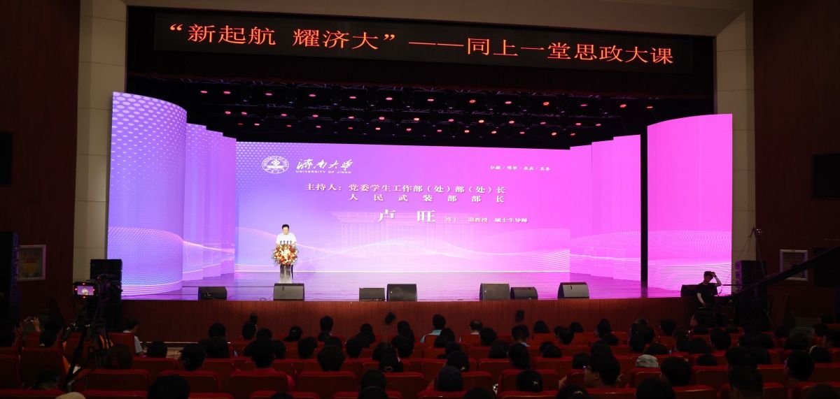 为深入学习贯彻党的二十届三中全会精神和习近平总书记关于加快建设教育强国的重要论述,全面落实学校四届五次全委会扩大会议精神,教育引导2024级新生坚定理想信念、厚植爱党爱国、爱校荣校情怀,9月9日,学校在大礼堂举办“新起航 耀济大”——同上一堂思政大课活动,邀请山东省优秀教师、山东高校思想政治课教学名师、开云kaiyun官网教学名师、开云马克思主义学院概论部主任李朋忠教授为新生授课,全体2024级新生通过线上线下相结合的方式参与学习,教务处相关负责人以及各学院新生辅导员参加活动。活动由党委学生工作部(处)部(处)长 武装部部长卢旺主持。