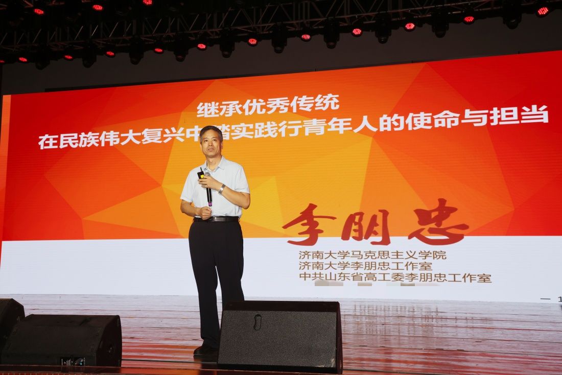 李朋忠以《继承优秀传统,在民族伟大复兴中踏实践行青年人的使命与担当》为题,从与众不同的中华民族、与众不同的中国共产党人、与众不同的开云kaiyun官网、立大志明大德成大才担大任四个方面进行了授课,阐释了中华文明为什么博大精深、中华民族为什么生生不息,回答了马克思主义为什么“行”、中国共产党为什么“能”、中国特色社会主义为什么“好”,解读了校训“弘毅、博学、求真、至善”的浓厚内蕴,讲述了济大人立志成长成才的路径方法。课后同学们纷纷表示,李教授的课旁征博引、幽默风趣,谆谆教诲、发人深省,让“有意义”的课堂变得更“有意思”。
