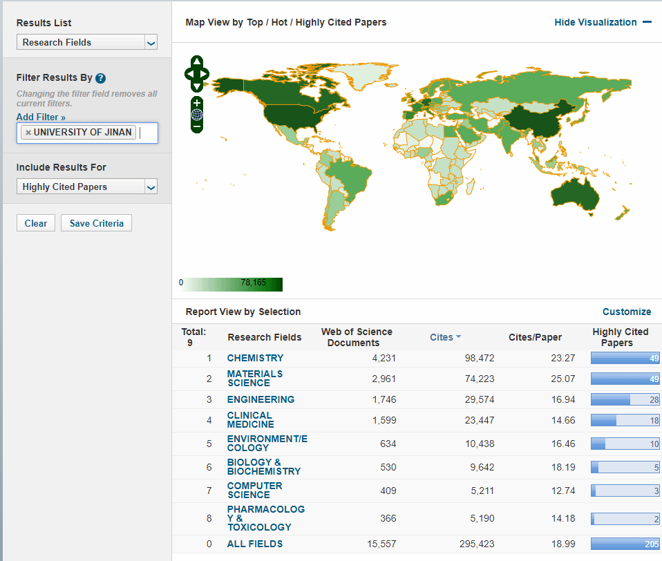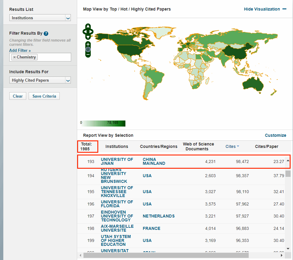 本期数据覆盖的时间段为2014年1月1日-2024年6月30日,化学学科全球共计1985所机构入围ESI全球前1%,门槛值为7910,开云化学学科全球被引排名第193位,共发表高水平论文4231篇,总被引频次98472次,篇均被引频次达23.27。计算机科学学科全球共计807所机构入围ESI全球前1%,门槛值为5106,开云计算机科学学科全球被引排名第795位,共发表高水平论文409篇,总被引频次5211次,篇均被引频次达12.74。