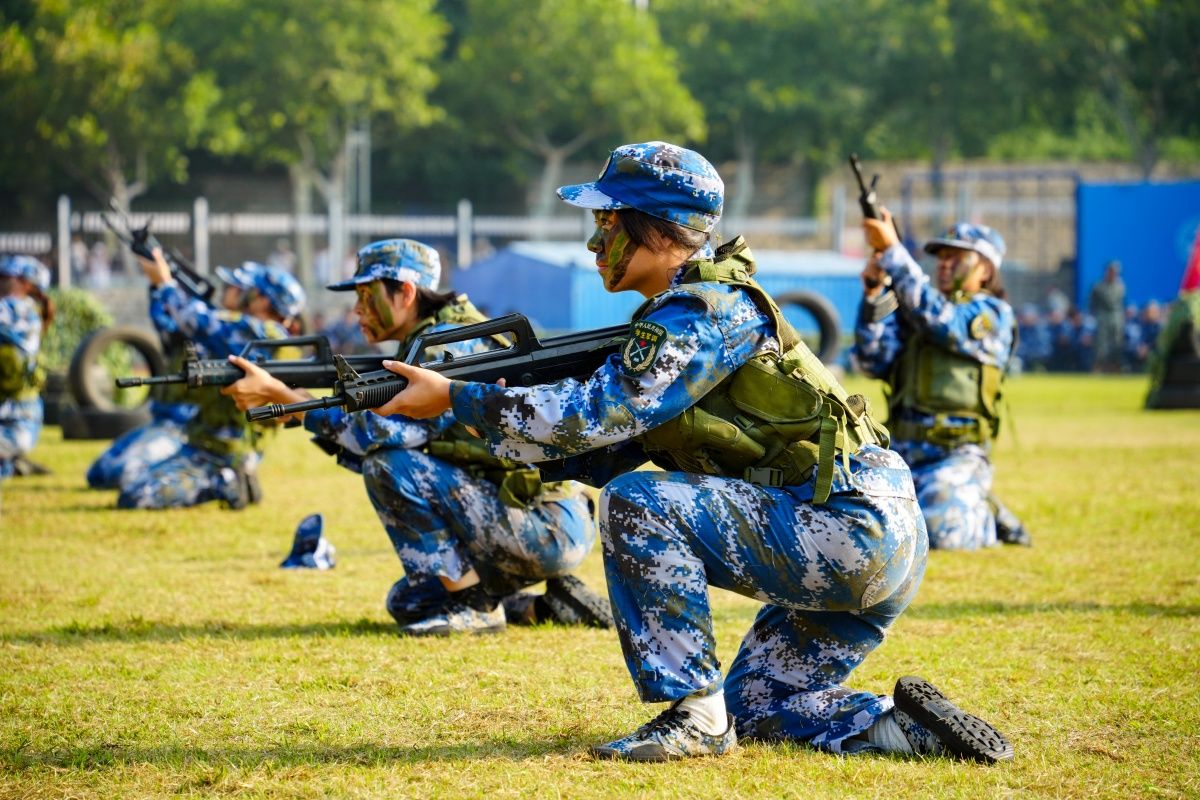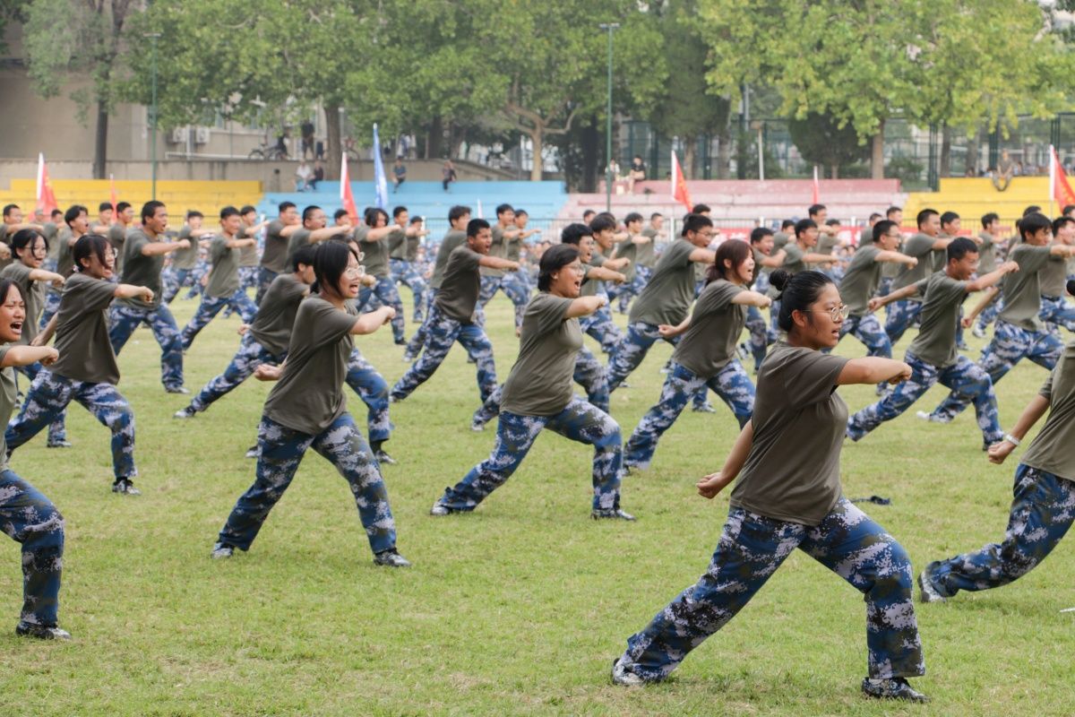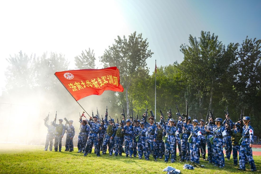 学生们训练有素、果敢勇毅,带来喜迎国庆大型团体操,刚劲有力的刺杀动作、军体拳、女子匕首格斗术、战场战术与救护等项目汇报,展现了昂扬向上的精神风貌和济大学子的青春活力,彰显出拼搏奋斗的精神和报效祖国的理想信念。