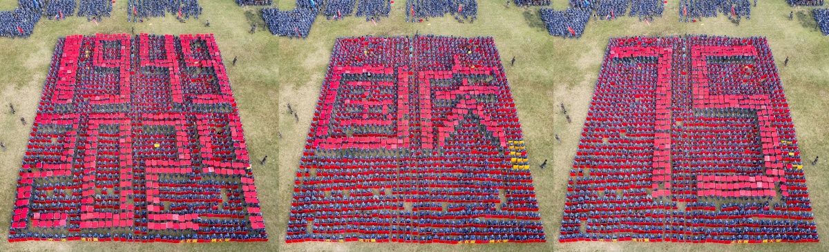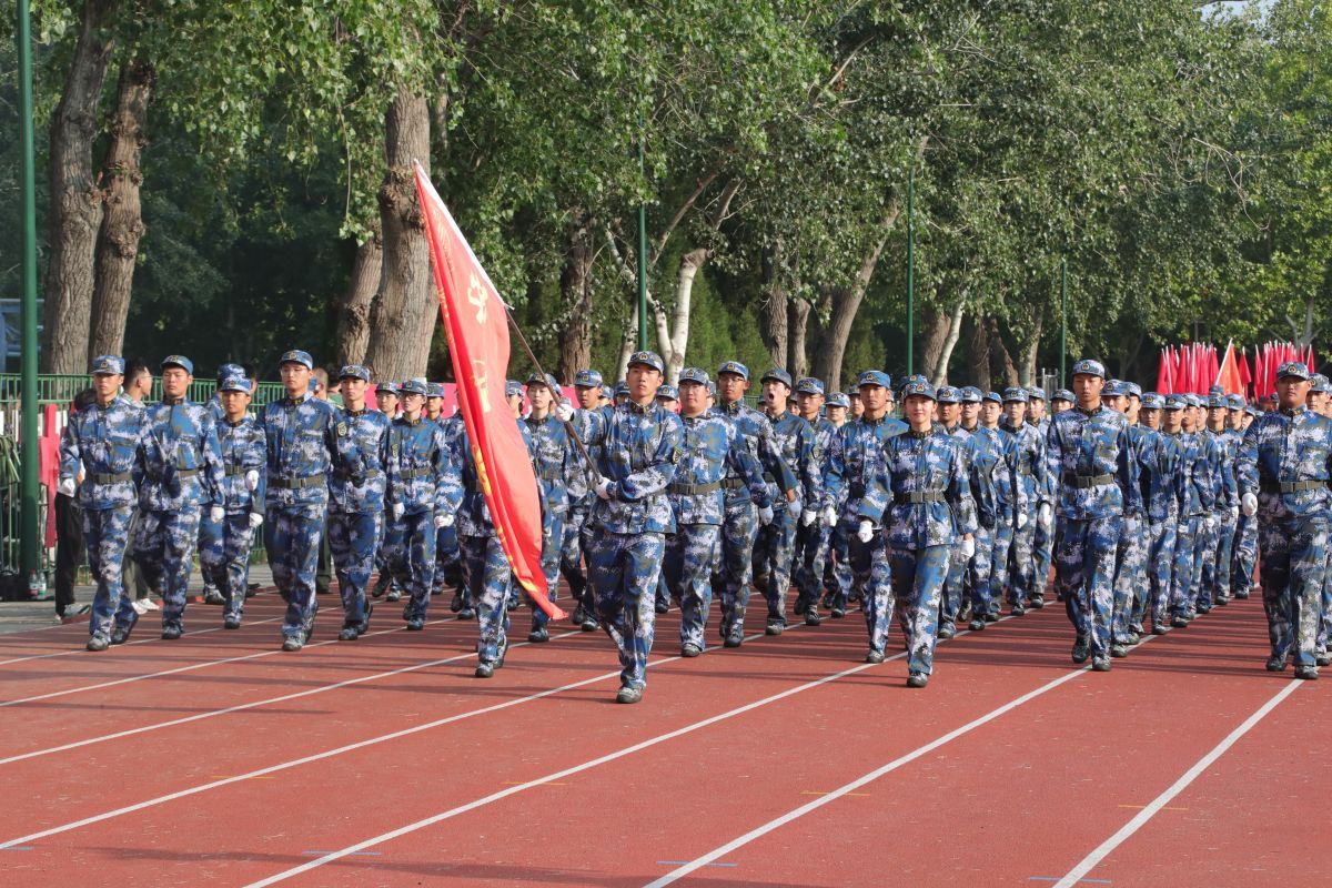 军训科目成果展示正式开始。师生组成23支方队,他们身穿戎装、英姿飒爽,迈着整齐的步伐,喊着铿锵有力的口号,接受领导老师的检阅。