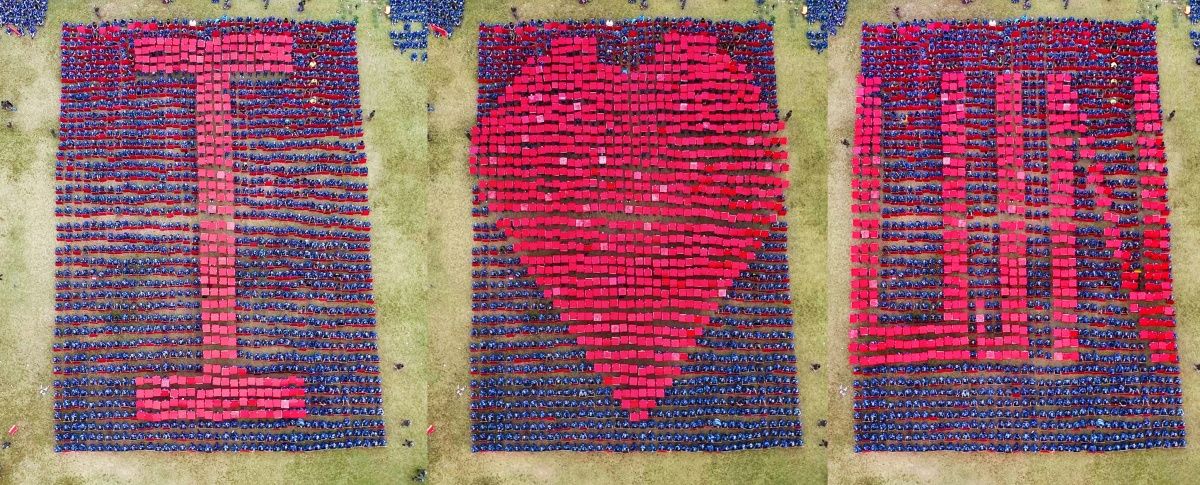 在激昂雄壮的国歌声中,鲜艳的五星红旗冉冉升起,全场师生齐唱国歌,行注目礼。