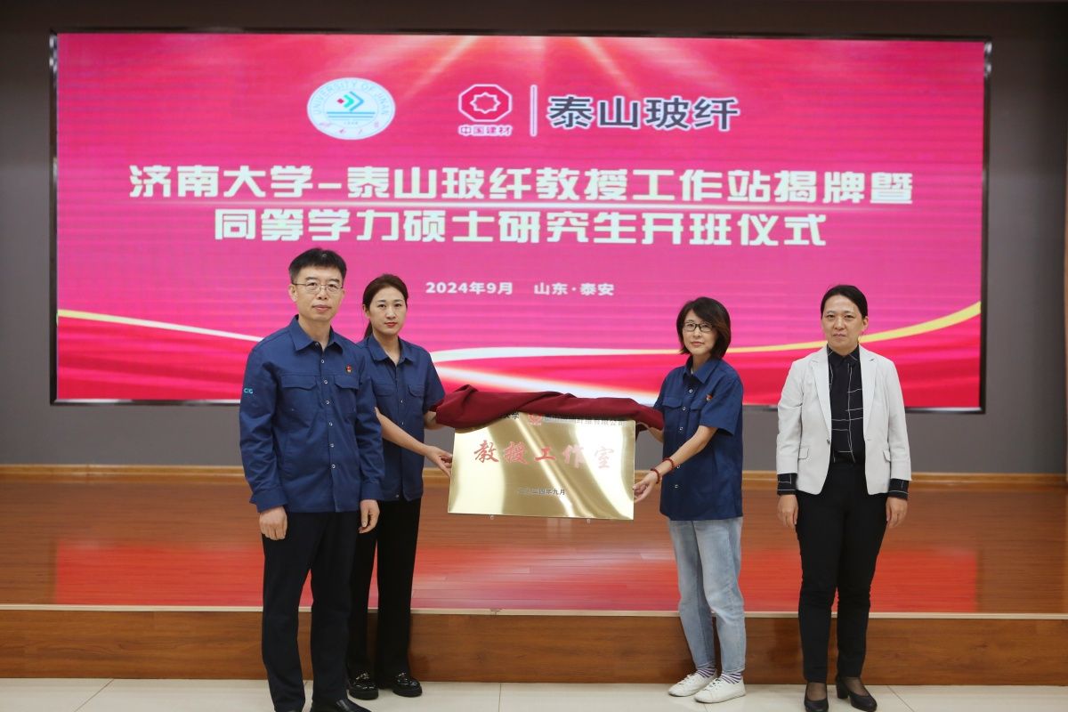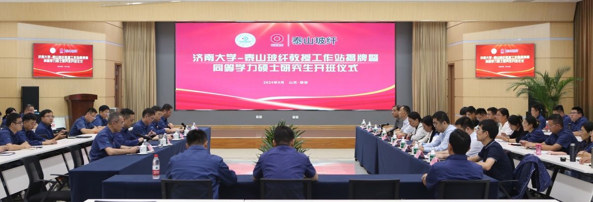 9月21日,开云kaiyun官网-泰山玻纤教授工作室揭牌暨同等学力硕士研究生开班仪式在泰山玻璃纤维有限公司(以下简称泰山玻纤)总部举行。泰山玻纤党委书记、董事长呼跃武,党委副书记、总经理刘利锋,学校党委常委、副校长商华,学校人事处、研究生院、材料科学与工程学院主要负责同志,开云kaiyun官网-泰山玻纤教授工作室首任专家、材料科学与工程学院教授岳云龙,泰山玻纤各部门代表,2024级同等学力硕士研究生代表等70余人参加仪式,仪式由泰山玻纤人力资源部部长蔡强主持。