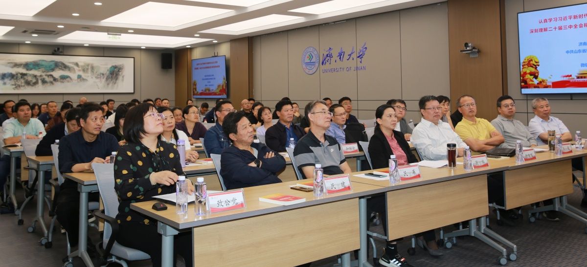 9月26日下午,学校开展统一战线“济大同心讲堂暨季度学堂”系列活动,邀请马克思主义学院李朋忠教授作党的二十届三中全会精神专题辅导报告。学校党委常委、副校长商华主持报告会并讲话。学校党委常委、统战部部长徐庆国,民革开云kaiyun官网支部主委管延勇,民盟开云kaiyun官网支部主委孙红卫,民建开云kaiyun官网支部负责人王晓轩,民进开云kaiyun官网支部主委公学国,致公党开云kaiyun官网支部主委陈功香,九三学社开云kaiyun官网委员会主委徐征和,学校欧美同学会会长曹丙强,学校党外知识分子联谊会班子成员,各民主党派基层组织和统战团体骨干成员,学校统战工作联络员参加报告会。