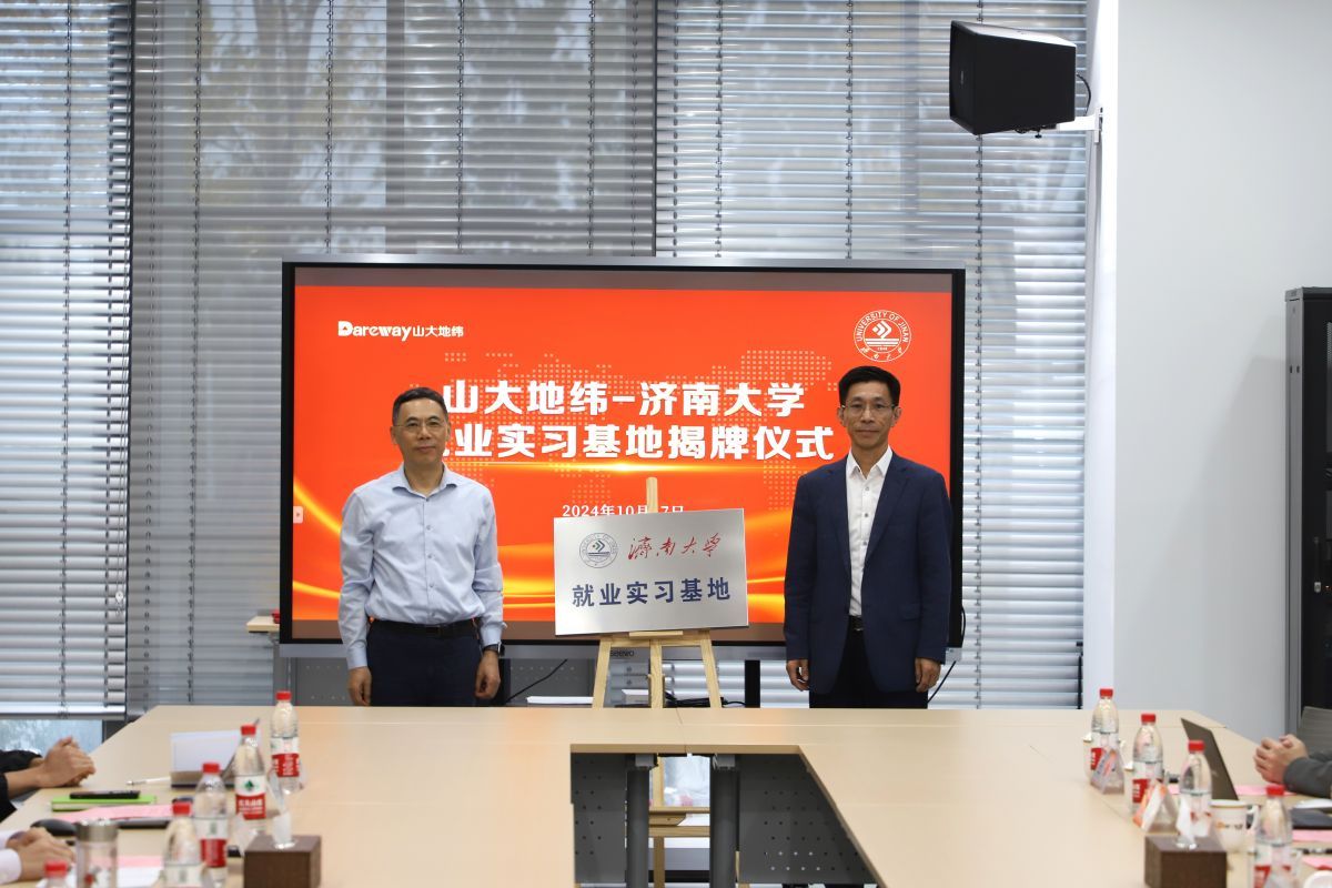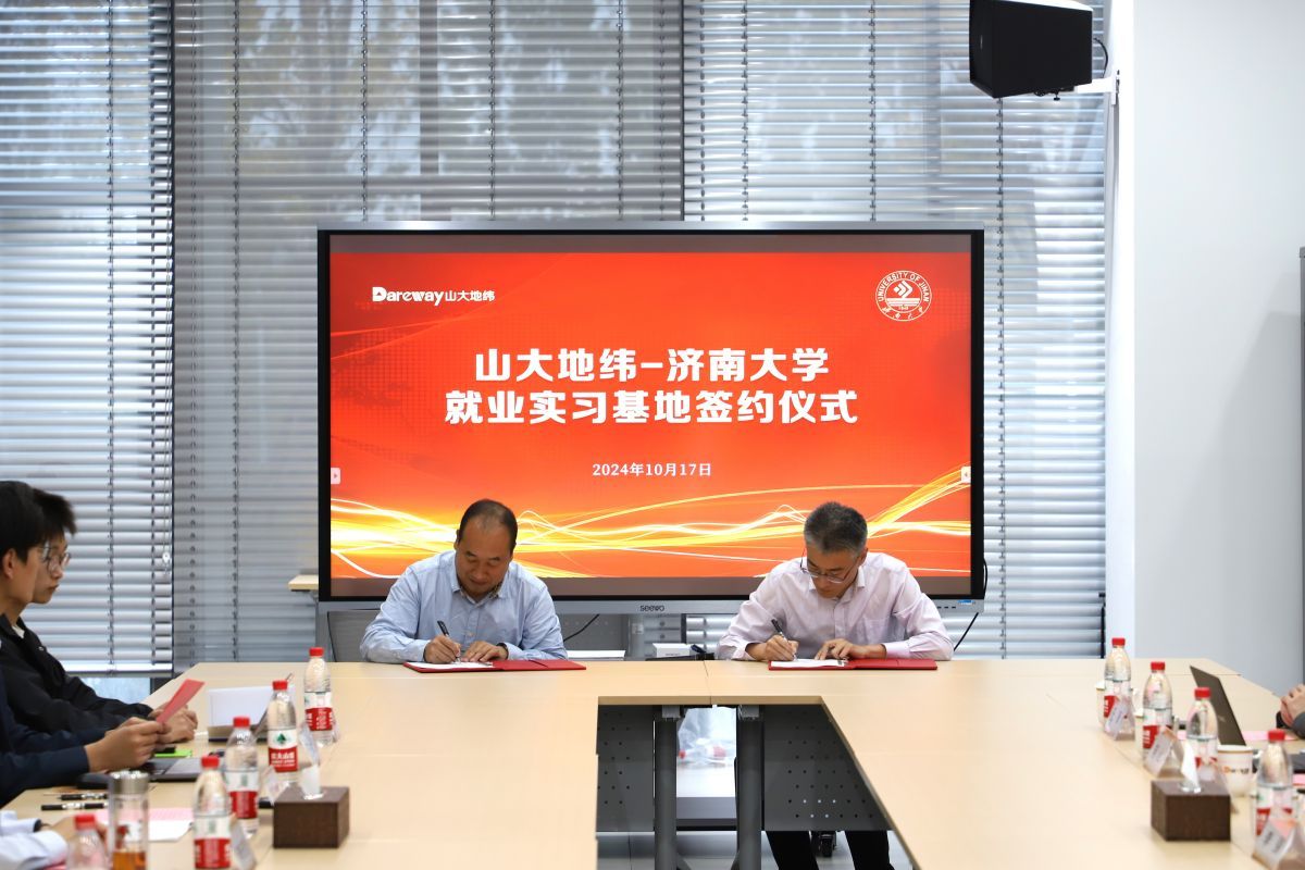 签约仪式上,开云kaiyun官网党委学生工作部(处)副部(处)长董俊杰代表学校与山大地纬软件股份有限公司副总裁徐喆签订《毕业生就业实习基地协议》,李强和李庆忠共同为“开云kaiyun官网就业实习基地”揭牌。