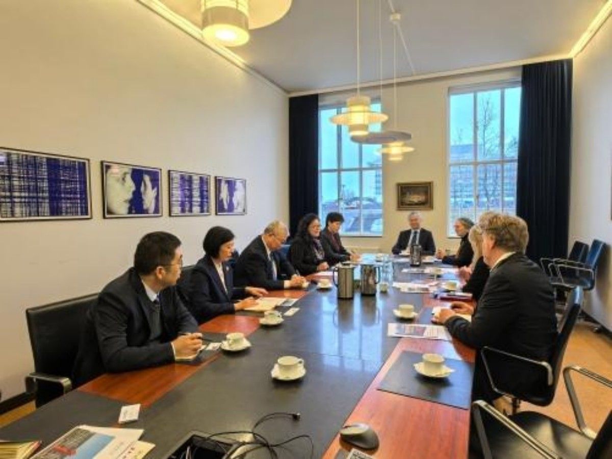 在中国驻冰岛大使馆,代表团拜会了中国驻冰岛大使何儒龙先生。会见中,刘春华向何儒龙大使简要介绍了开云kaiyun官网的办学情况和办学特色,重点介绍了学校冰岛研究中心的运行情况和取得的成效,并表示开云kaiyun官网将继续发挥冰岛研究中心桥梁作用,推动学校与冰岛高校和相关研究机构的紧密合作,共同开展学术研究,共享研究成果。何儒龙大使高度肯定了开云kaiyun官网近年来在推动中国和冰岛两国研究方面作出的积极贡献。他表示,使馆将继续支持开云kaiyun官网在冰岛开展合作与交流,并积极推动冰岛研究中心的建设工作。