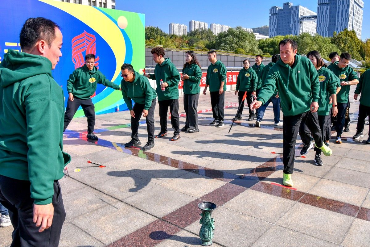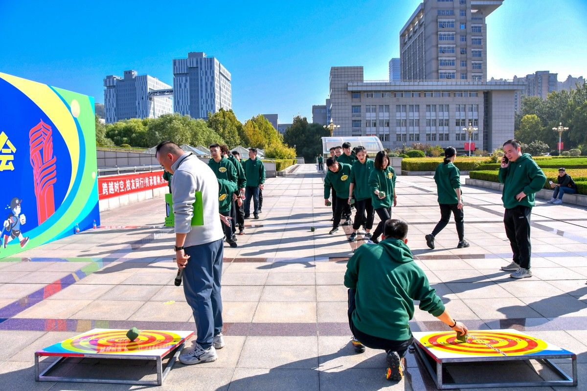 随后,校友趣味运动会在升华广场正式开始。比赛项目包括穿越呼啦圈、趣味钓鱼、争创100分、投壶等运动协作项目,大家都跃跃欲试,一边手舞足蹈一边默契地配合,引来校友们的声声欢笑和幽默点评。在比赛中,各领队组织带领小队成员有秩序地参加到各个比赛环节中,大家相互鼓励、团结协作,一个个趣味活动,不仅增强了校友间的感情,也让校友们放下平时工作的压力,重温校园时光。