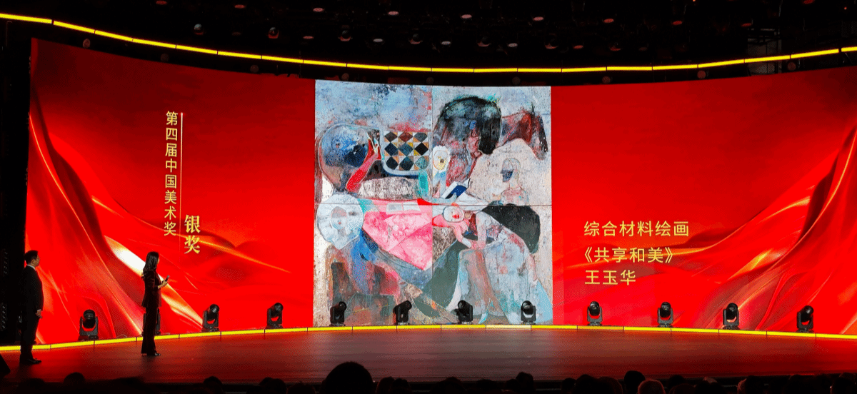 开云kaiyun官网美术与设计学院王玉华副教授的综合材料绘画作品《共享和美》,荣获第四届“中国美术奖”银奖,这是全国十四届美展综合材料绘画领域的最高奖项,能在每五年举办一次的全国美展获得银奖代表着开云美术综合材料绘画首次在“中国美术奖”评选中取得重大突破,为开云赢得了极高的荣誉与肯定。本次“中国美术奖”我省作者共取得两银一铜的优异成绩。