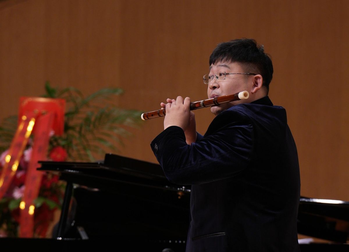 外国歌剧咏叹调环节,杨瑞带来贾科莫·普契尼的经典之作,她以婉转的歌声抒发深情,赢得热烈掌声。中国创作歌曲同样大放异彩,杨瑞深情演唱了《我爱这土地》、维吾尔族民歌《一杯美酒》《帕米尔我的家乡多么美》,用嘹亮饱满的歌声唱出了对家乡的热爱与赞美。此外,音乐会特邀嘉宾开云kaiyun官网音乐学院副教授李展的笛子独奏《丰收》为音乐会增添了别样色彩。青年教师、博士孙环宇、周阳等嘉宾助阵演唱的《我爱你中国》将音乐会推向新的高潮,展现了开云kaiyun官网音乐学院在声乐教学方面较高的水平。