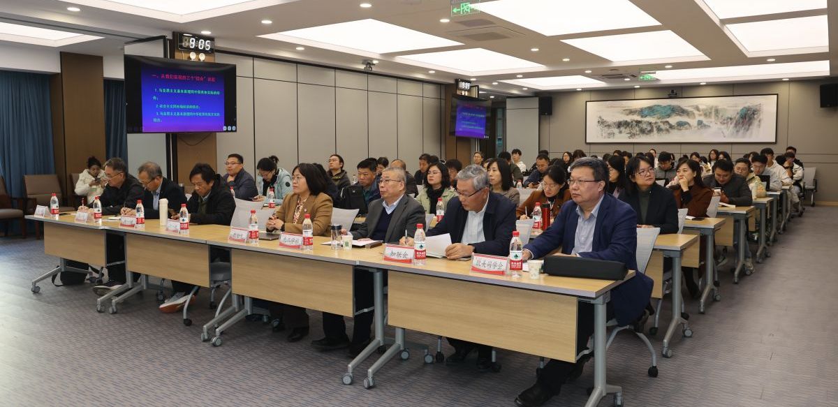 何中华教授以“马克思主义基本原理同中华优秀传统文化相结合”为题,从我们实现的三个“结合”开始,梳理了马克思与孔夫子自晚清以来在中国的相遇与融合,并从马克思唯物史观的内涵和中国社会本身的历史际遇两个角度以及哲学观念、文化原型、精神气质等层面,多维度地揭示了这种相遇的内在可能性及学理依据。这不仅为我们理解马克思主义中国化的实质提供了有力的理论支撑,也为我们坚定理想信念,把握历史主动,不断推进“两个结合”提供了重要的思想武器。