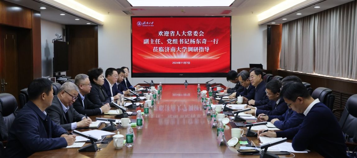 11月7日,山东省人大常委会副主任、党组书记杨东奇一行来校调研。省人大常委会委员、教科文卫委员会主任委员佘春明,省人大常委会法制工作委员会副主任田丙昆,省人大有关处室同志参加。学校党委书记刘春华,党委副书记、校长刘宗明,党委常委、副校长黄加栋,有关部门单位负责人陪同调研。