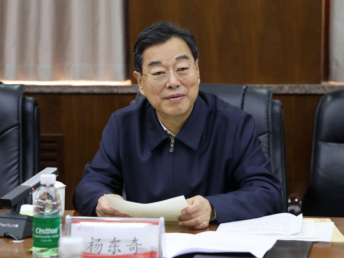 杨东奇强调,要加强党建引领,坚持以习近平新时代中国特色社会主义思想为指导,坚持社会主义办学方向,认真落实党委领导下的校长负责制,切实抓好全面从严治党各项工作;要加强学科建设,将学科建设作为办学治校的核心任务、提高办学层次的核心指标,做好学科建设规划,深入促进学科交叉融合,不断推动学科实力向更多层次迈进;要加强科学研究,把科学研究与学科建设、人才培养等工作紧密结合起来,充分发挥高校科研优势特色,加强科研团队建设,力争产出更多标志性科研成果;要加强人才培养,落实立德树人根本任务,深化教育教学改革,深入做好社会实践教育,不断改善育人条件,充分发挥教师教育引导和示范带动作用,助力学生全面发展、成长成才;要加强融入经济社会发展,紧密围绕国家战略和区域发展需要,加强与地方政府的沟通联系,扎实推进科学研究、成果转化,进一步加强地方立法基地建设,更加充分发挥基地服务发展作用;要加强师资队伍建设,深化人事制度改革,构建有差别的绩效工资制度,更加有效激发工作动力,创造有利条件帮助年轻人才尽快成长,力争培育“大师”级人才;要加强各项保障工作,坚持办学目标定位,统筹做好思政教育、后勤管理、基础设施改善等工作,切实维护校园安全稳定,为高水平大学建设提供坚实基础。
