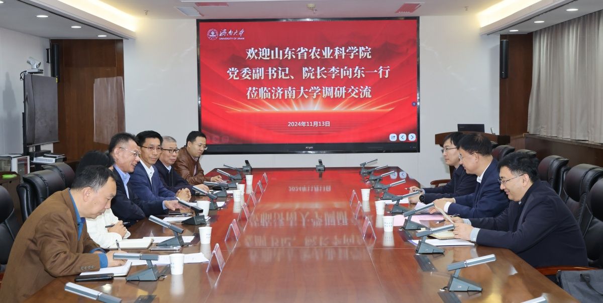11月13日,山东省农业科学院党委副书记、院长李向东一行来校调研交流。学校党委副书记、校长刘宗明会见客人,陈月辉教授参加会见和座谈,党委常委、副校长李强参加会见、座谈并陪同调研。