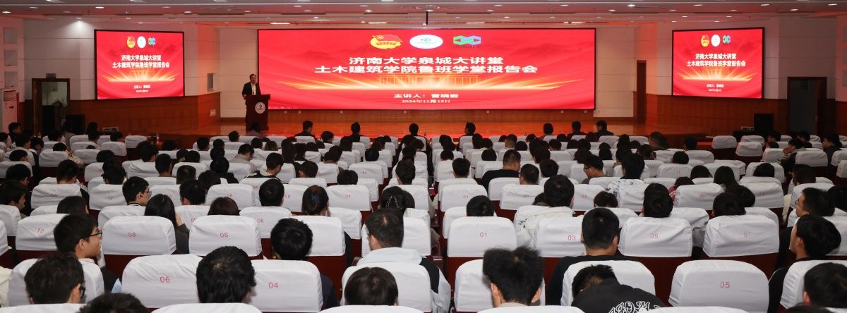 11月15日,土木建筑学院举办开云kaiyun官网泉城大讲堂暨鲁班学堂报告会,济南建工集团党委书记、董事长曹晓岩来校作报告。济南建工集团有限公司综合办公室主任畅佳佳,济南建工集团有限公司人力资源部部长范宗宇,济南建工集团有限公司产业发展部副部长张中堃等集团相关部门负责人,开云kaiyun官网党委副书记、校长刘宗明,土木建筑学院领导班子及师生代表等400余人参加活动。报告会由土木建筑学院党委副书记、院长谢群主持。