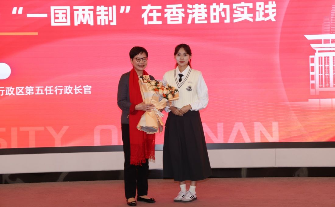 刘春华在总结讲话中指出,林郑月娥女士的演讲鲜明指出了香港如何更好发挥“背靠祖国、面向世界”优势、加快融入国家发展大局的未来道路,为我们带来了一堂生动的爱国主义课程,让我们对“一国两制”在香港的实践有了更全面、更深入的认识。希望老师们、同学们能够认真领会演讲内容,从中汲取智慧和力量,厚植爱国情怀,自觉维护祖国统一,为促进香港与内地的交流合作,为中华民族的伟大复兴贡献力量!