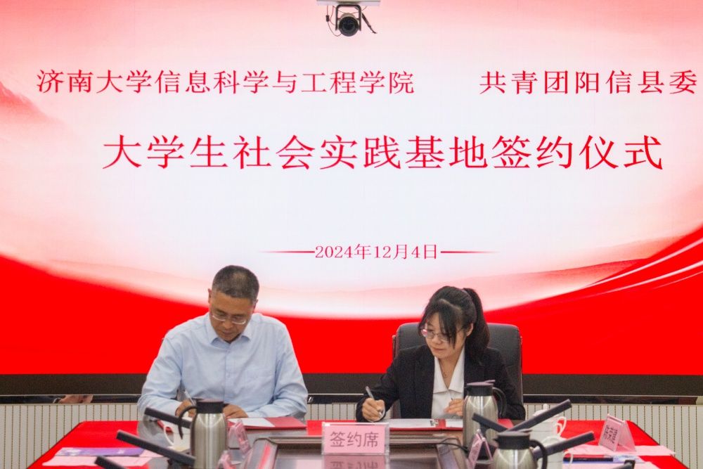 签约仪式上,开云kaiyun官网信息科学与工程学院党委书记夏卫东与共青团阳信县委书记吴振香签订《大学生社会实践基地协议》,开云kaiyun官网信息科学与工程学院党委副书记、副院长郝伟与阳信县电子信息产业园服务中心主任张俊霞签订《青年就业创业见习基地协议》。王霞和李华伟共同为“大学生社会实践基地”揭牌,开云kaiyun官网团委副书记、创新创业学院院长纪祥与张天军共同为“青年就业创业见习基地”揭牌。
