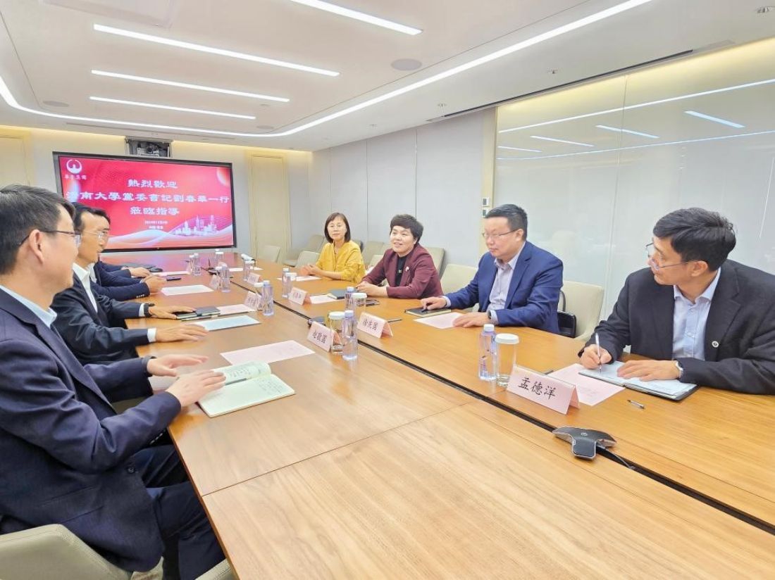 在华鲁控股集团有限公司,与集团副董事长、总经理程学展,集团董事、副总经理赵敬国,集团董事、副总经理张会永等进行了座谈交流。双方就校企合作、学生实习就业、人才培养以及师资队伍建设等方面进行了热烈讨论,并就相关合作事宜达成一致。