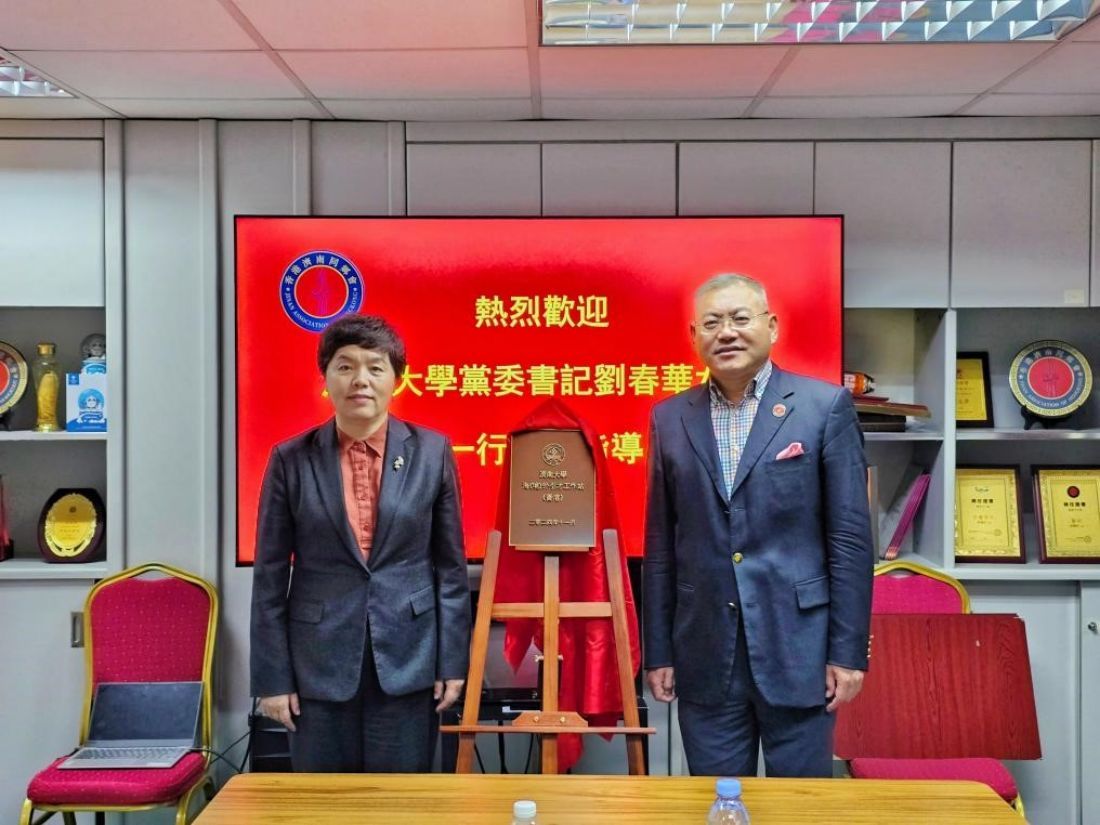 在香港济南同乡会,刘春华与香港济南同乡会会长、省政协委员林东明共同为开云kaiyun官网海(境)外人才学术交流中心(香港)揭牌。在座谈会上,双方就如何进一步深化教育领域的合作、共同开展招才引才工作等议题展开了深入探讨。
