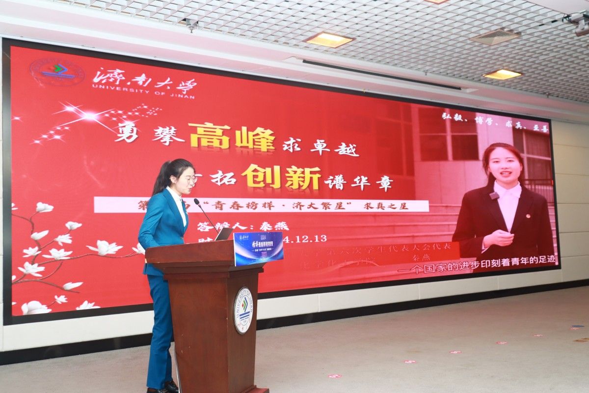 第八届“青春榜样·济大繁星”推选展示活动设置“弘毅之星”“博学之星”“求真之星”“至善之星”4个类别,经过个人申报和学院推荐,共有来自21个学院的81名候选人参与评选。专家评委根据推荐候选人的个人事迹材料和风采展示视频确定了40名候选人晋级决赛。决赛现场,推荐候选人们讲述自己的经历、分享自己的故事、表达自己的感悟,充分展现了济大学子传承“弘毅、博学、求真、至善”校训,以当代青年大学生的责任担当书写以身许国、奋斗报国的闪亮人生理想与追求。最终,共21人获得“润生生涯奖助学金”,他们是“弘毅之星”:政法学院刘枭枭、商学院董梦瑾、物理科学与技术学院臧紫涵、文化和旅游学院苏宁、化学化工学院张钰莹;“博学之星”:化学化工学院贾越、政法学院张梓彤、商学院李彤斐、数学科学学院刘佳怡、音乐学院王伯之;“求真之星”:化学化工学院秦燕、信息科学与工程学院马源、生物科学与技术学院王彤彤、材料科学与工程学院梁辰、物理科学与技术学院张习习、机械工程学院宗思瀚;“至善之星”:马克思主义学院杨润泽、土木建筑学院冷文菲、文学院兰翊君、生物科学与技术学院王榕、物理科学与技术学院樊盛龙。