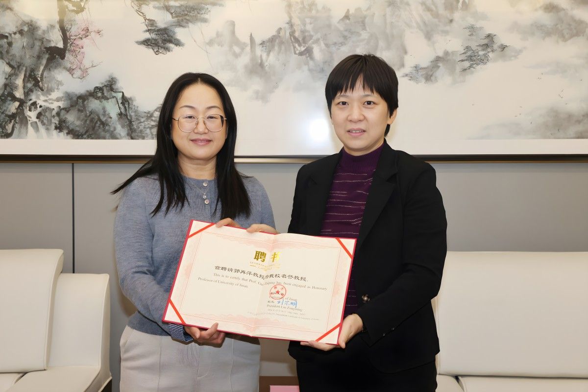 学校党委副书记商华会见来访客人,并为郭再萍教授颁发名誉教授聘书。材料科学与工程学院相关负责人参加会见活动。
