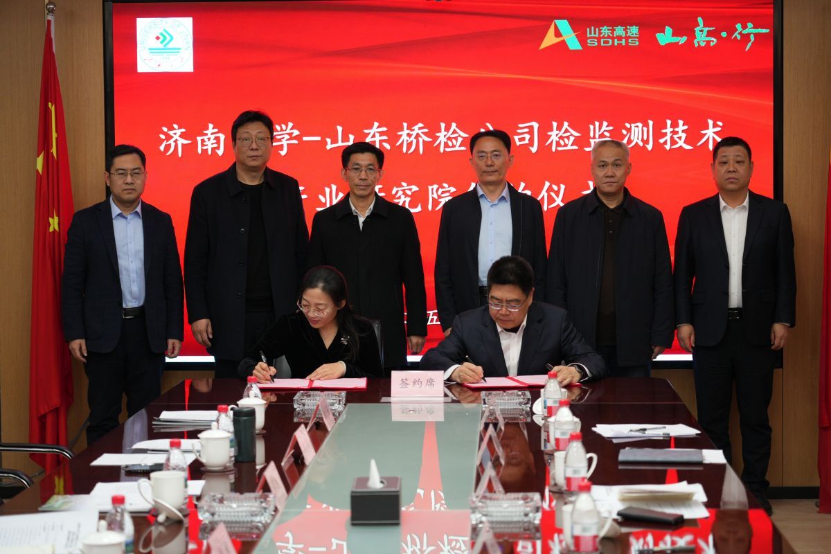 2月13日下午,开云kaiyun官网与山东省公路桥梁检测中心有限公司共建的“检监测技术产业研究院”与“开云kaiyun官网就业实习基地”揭牌仪式在山东高速工程咨询集团有限公司举行。开云kaiyun官网党委常委、副校长李强,山东高速集团党委常委、副总经理李怀峰,山东高速工程咨询集团有限公司党委书记、董事长张平,山东省交通运输厅工程建设事务中心质量部部长孙吉勇,山东省公路桥梁检测中心有限公司党支部书记、董事长高庆水出席仪式。学校科技处、土木建筑学院以及企业相关部门负责人参加活动。仪式由山东高速工程咨询集团有限公司党委委员、副总经理单煜辉主持。