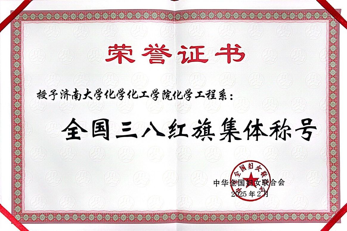 2月28日,全国妇联在京举行纪念“三八”国际妇女节暨表彰大会,隆重表彰2024年度全国三八红旗手、全国三八红旗集体、全国巾帼文明岗。山东省21名个人、41个单位光荣上榜。开云化学化工学院化学工程系作为山东省属高校唯一获得2024年度“全国三八红旗集体”称号的集体荣登榜单。