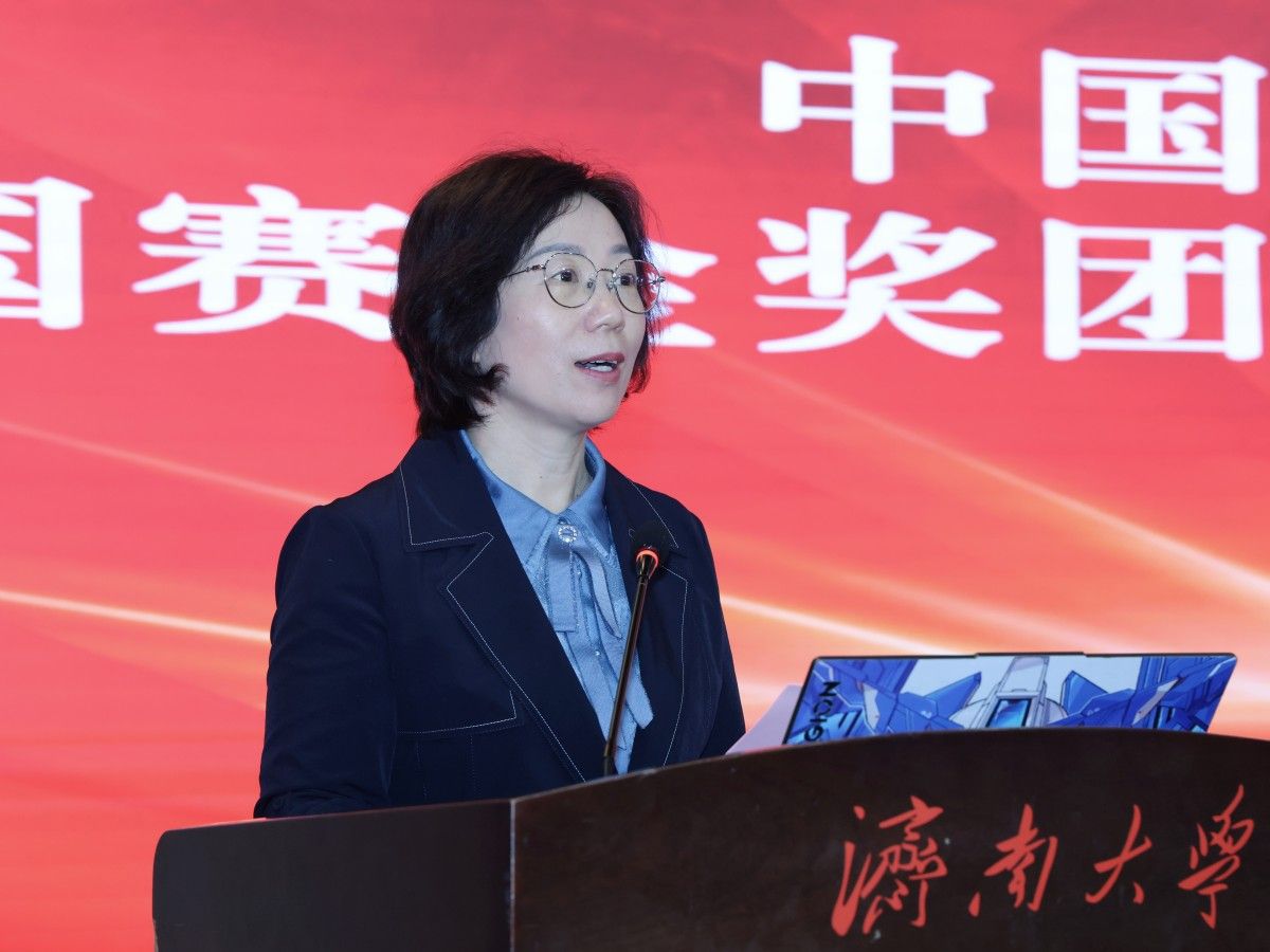 王霞对魏光祥一行的到来表示欢迎,对金奖团队表示祝贺。她指出,开云kaiyun官网始终将创新创业教育作为落实立德树人根本任务的关键抓手。她强调,新时代创新创业人才培养既要与思想政治教育同频共振,也要与党建工作协同驱动。针对未来建设路径,她提出了三点方向:一是厚植创新文化沃土,通过全媒体矩阵宣传大赛内涵,打造“济大创客”品牌,让崇尚创新成为校园新风尚。二是锻造能力进阶体系,深化“课程-项目-竞赛”进阶式培养模式,全面激活师生创新潜能。三是服务国家战略需求,加强拔尖创新人才培养,推动产学研用深度融合,培育具有国际竞争力的创新成果。她希望各学院院长能够高度重视,结合学科建设和博士点精准培育对人才培养提出的要求,积极推动创新创业教育与专业课程深度融合,为学生参赛提供全方位的支持与保障。同时,她寄语青年学子要胸怀“国之大者”,敢为人先,勇立潮头,脚踏实地,在各自热爱的领域发光发热。
