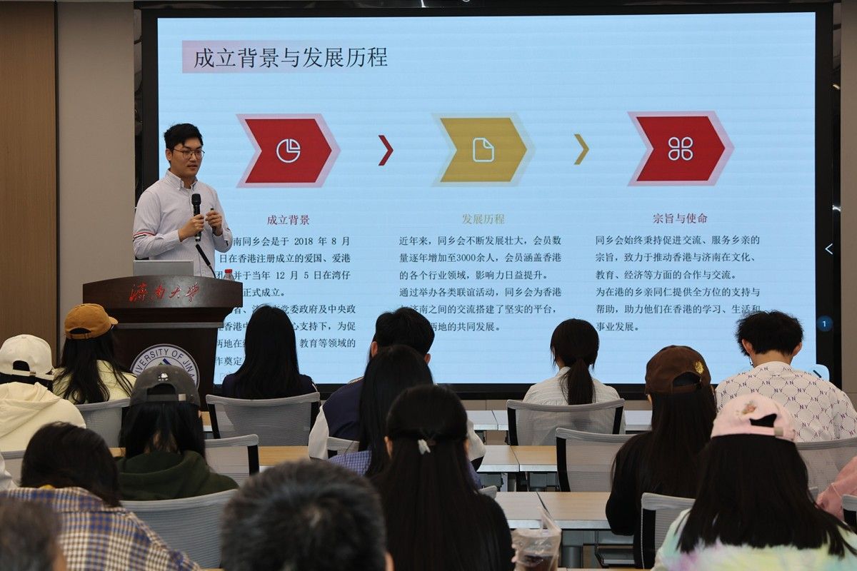 座谈会后,林东明一行参观了学校办学成就展,深入了解学校的发展历程、办学特色以及取得的成就。香港济南同乡会常务副秘书长宫政博士就赴香港高校深造等方面作专题辅导,与学生进行现场互动交流。