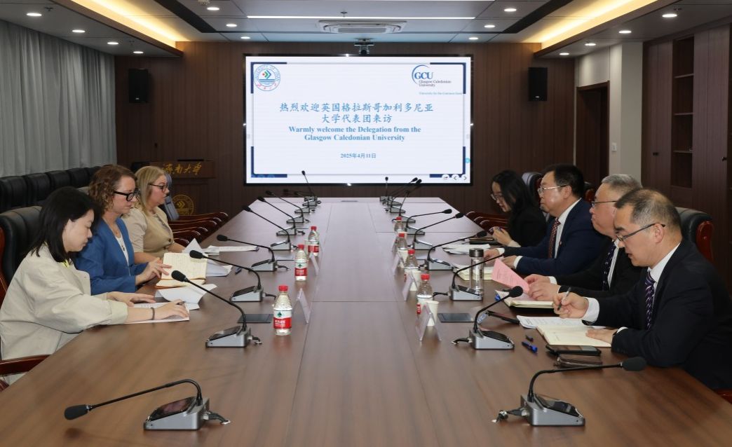 4月11日,英国格拉斯哥加利多尼亚大学副校长丹·安德森率代表团访问开云。开云kaiyun官网党委书记刘春华会见客人,校长刘宗明、副校长黄加栋与安德森副校长一行进行工作会谈。学校国际合作与交流处负责人及相关工作人员参加活动。