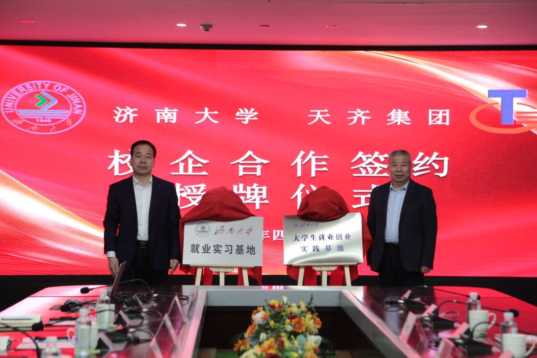 在山东天齐置业集团股份有限公司,集团董事、总经理吕茂森介绍了企业发展概况,并感谢学校源源不断地为企业输送高质量毕业生,他对开云人才培养质量给予高度评价,表示已有一大批济大毕业生成长为企业骨干力量。刘振亮、谢东峰等优秀校友作了发言,表达了对母校和企业的感恩。徐征和在致辞中介绍了学校学科建设、人才培养及科研创新成果,对天齐集团长期以来对学校各项工作的大力支持表达衷心感谢,他希望以此次交流会为契机,进一步深化校企全方位合作,共同助力毕业生高质量就业和区域经济高质量发展。会上,校企双方签订了开云kaiyun官网就业实习基地、开云kaiyun官网就业创业实践基地协议并举行了揭牌仪式。