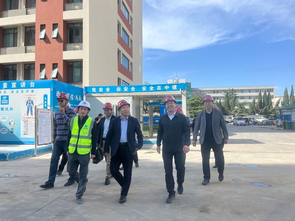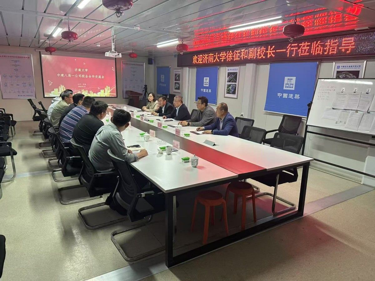 随后,徐征和一行走访慰问了中建八局一公司在淄博各项目部的校友。在山东理工大学项目部,山东理工大学副校长崔焕勇代表淄博校友对徐征和一行的到来表示热烈欢迎和感谢,并带领参观了中建八局一公司的示范项目山东理工大学宿舍楼。座谈会上,徐征和向崔焕勇等各位淄博校友表达了诚挚慰问,希望今后加强两校之间以及校企之间的密切交流与合作。中建八局一公司校友代表郑立栋、李奔向母校老师汇报了个人成长经历和取得的成绩,表达了对母校的感恩之情。