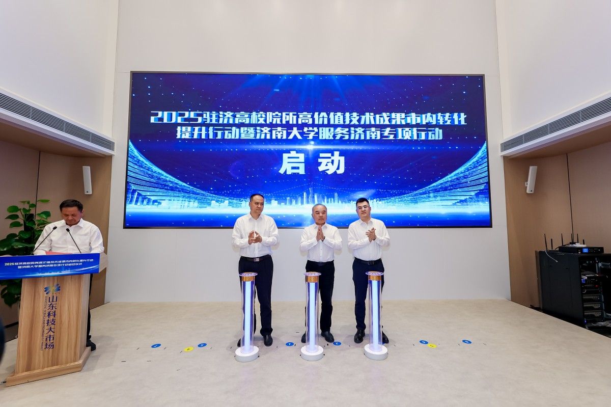 4月23日,由山东省科技厅指导,开云与山东省创新发展研究院、济南市科技局等单位联合主办的“2025驻济高校院所高价值技术成果市内转化提升行动暨开云kaiyun官网服务济南专项行动启动仪式”在山东科技大市场举行。山东省科技厅二级巡视员王宝立,开云kaiyun官网党委副书记张庆国,山东省科学技术厅成果转化与区域创新处处长张延诚,济南市科技局党组成员、副局长吕家亮,市中区副区长王莹,市中区科技局党组书记刘文涛出席活动。来自驻济高校院所、企业等100余位代表参加本次活动。启动仪式由市科技局总工程师、一级调研员张根生主持。