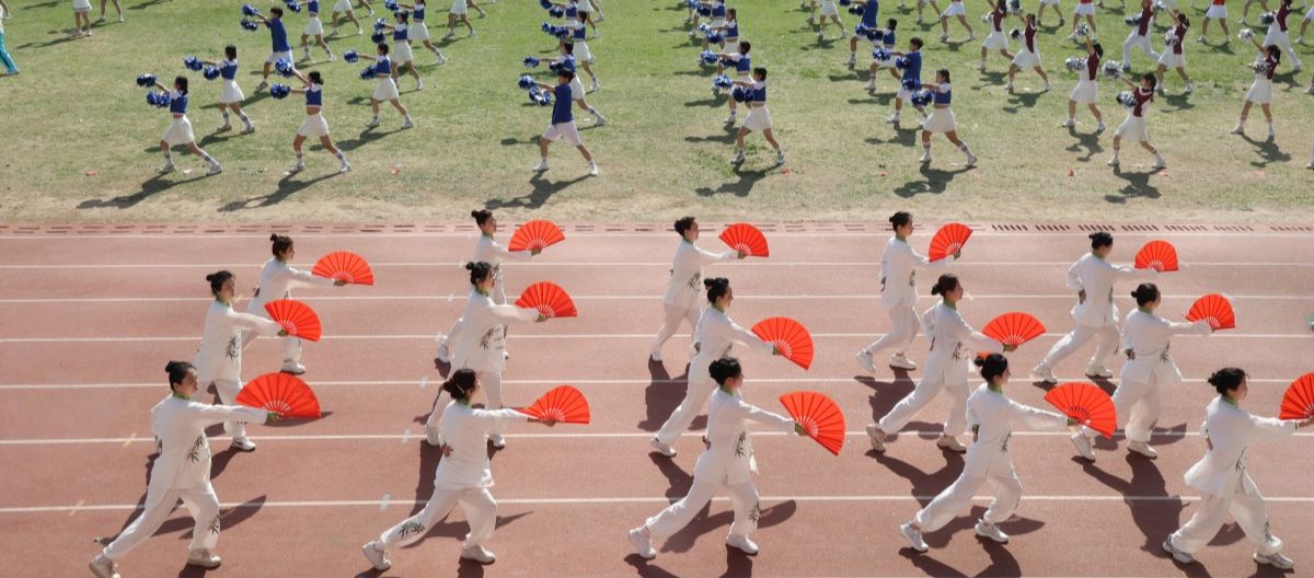 运动员、裁判员退场后,精彩的校园健身操表演开始。青春与活力的展现,朝气与蓬勃的澎湃,优美的表演、舒展灵活的动作,学生们在和谐的节律中诠释着青年学子健康向上的精神风貌。