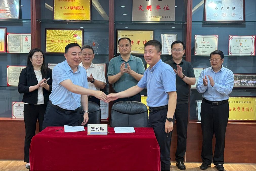 第二日上午,团队一行来到枣庄市国防教育训练基地、鲁南发展投资集团参观座谈。在鲁南发展投资集团座谈会上,总经理宋艳德详细介绍了集团的产业布局和发展理念,深入剖析了区域经济布局与产融结合趋势,期待与学校在经济管理、产业规划等领域开展智库合作。张庆国介绍了学校在学科发展、科研平台、人才培养等方面的情况,重点针对当前毕业生结构性就业矛盾问题,提出希望双方以本次合作交流为契机,建立常态化交流合作机制,实现推动毕业生高质量就业、助力企业高质量发展的双向赋能。活动中,校企双方签订“开云kaiyun官网就业创业实习基地”协议,张庆国、宋艳德共同为基地揭牌。